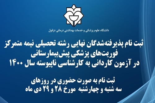 ثبت نام در رشته فوریت پزشکی در روزهای سه شنبه و چهارشنبه  مورخ 28 و 29 دی ماه